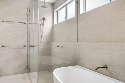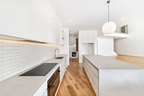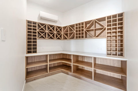 This custom-designed masterpiece was tailored to meet the owner's every need, offering unique features such as a dedicated fishing room, a wine cellar, and a private office for working from home. The home’s Prestige Oak flooring adds warmth and sophistication throughout its two-storey layout, complemented by a stylish 2pac kitchen and walk-in pantry, complete with Caesarstone ‘concrete look’ benchtops.
